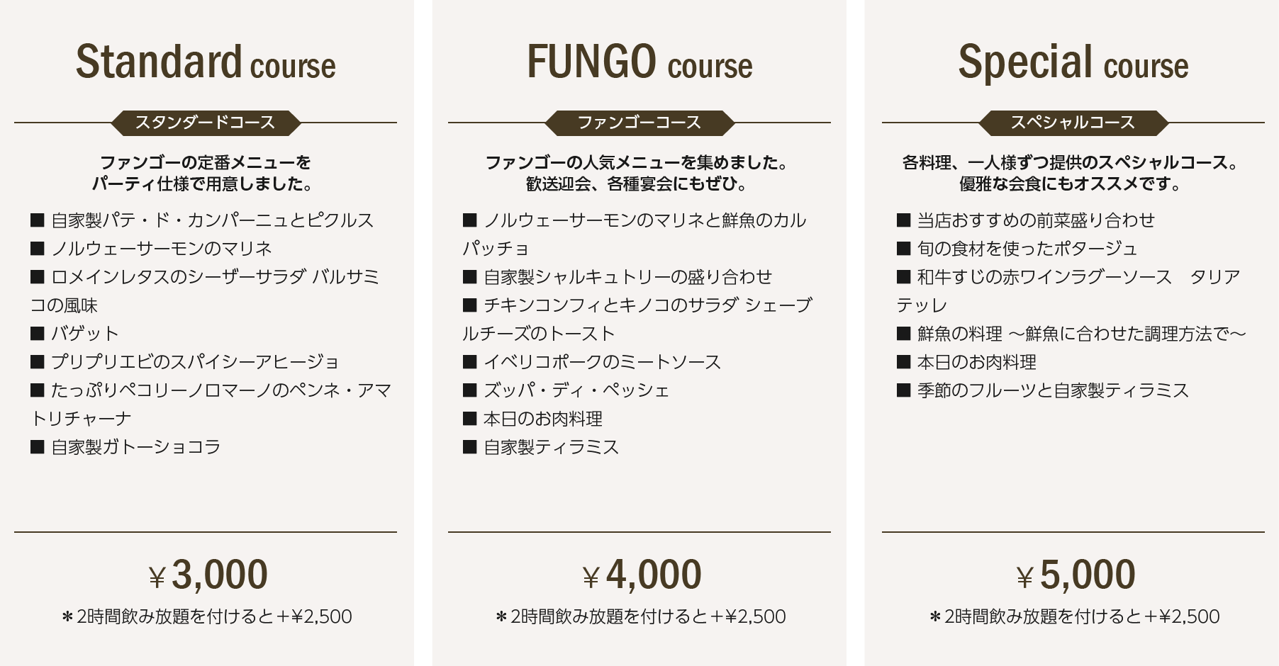 | ● デザート3 種盛り合わせ | ¥1,300 |